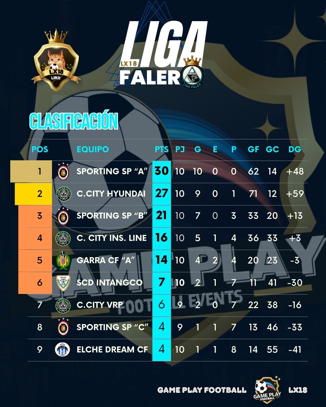 CLASIFICACIÓN LIGA FALER LX18 - JORNADA
